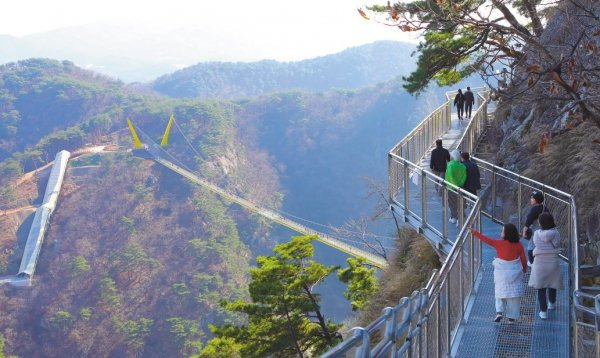 간현협곡의 암릉과 섬강을 가르는 출렁다리는 원주 액티비티의 얼굴입니다. 기존 200m급 출렁다리에 더해, 400m가 넘는 울렁다리가 조성되면서 보행교만으로도 체감 동선이 풍부합니다. 케이블카·스카이타워·데크 산책로를 묶어 반나절 코스로 잡으면, ‘상공-암릉-하천’의 표정이 이어져 지루할 틈이 없습니다. 바람이 센 날엔 흔들림이 크게 느껴질 수 있으니, 난간 잡고 천천히 걷는 게 포인트.