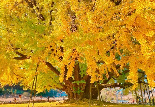 수령 800~1,000년으로 추정되는 거목이 논 한가운데 서 있습니다. 가을 단풍철엔 황금색 캐노피가 펼쳐져, 이른 오전 역광·해질녘 사광 모두 포토 포인트가 됩니다. 마을 골목은 협소해 성수기엔 임시 주차 유도를 따르는 게 안전합니다. 비바람 이후 낙엽 레이어가 바닥을 덮을 때의 색감도 놓치지 마세요.