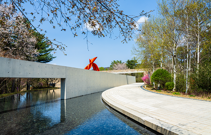 안도 다다오가 설계한 수평적 콘크리트와 원주의 능선이 포개지며 만들어내는 고요가 압권입니다. 본관 전시, 조각정원, 플라워가든을 거쳐 제임스 터렐관으로 이어지는 동선은 ‘빛’을 감상하는 법을 다시 배우는 느낌마저 줍니다. 유리·물·돌·하늘이 프레이밍하는 풍경은 계절마다 절정이 다릅니다. 맑은 날엔 색의 농도 대비가 선명하고, 흐린 날엔 콘크리트 표면의 질감이 더 살아납니다. 관람 전후로 산책로의 고저차를 가볍게 걸으면 전시의 잔상이 길게 이어집니다.